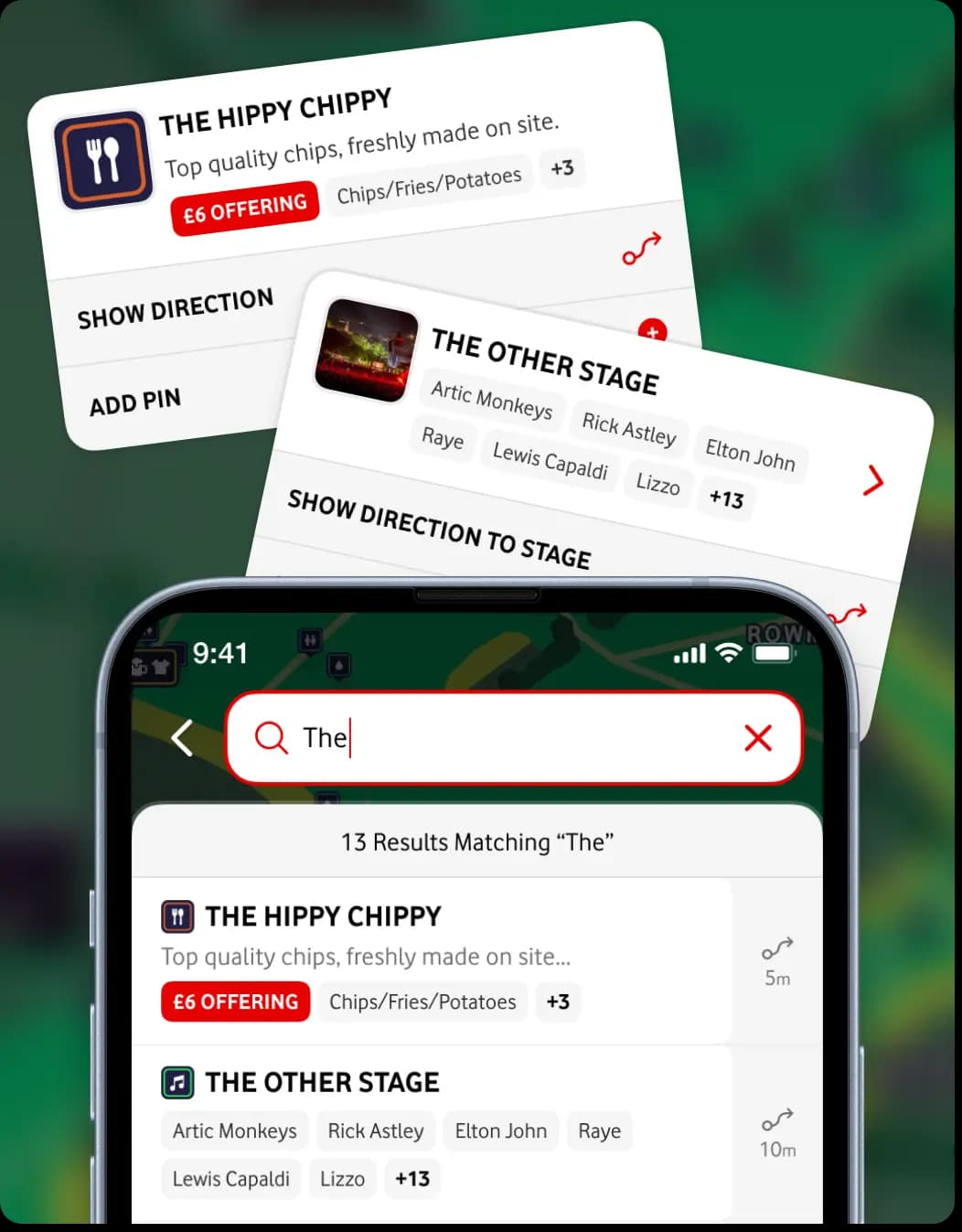 Craving vegan dumplings or loaded nachos? Filter the map to find exactly what you're after, and locate camping shops and merch stands with a tap.